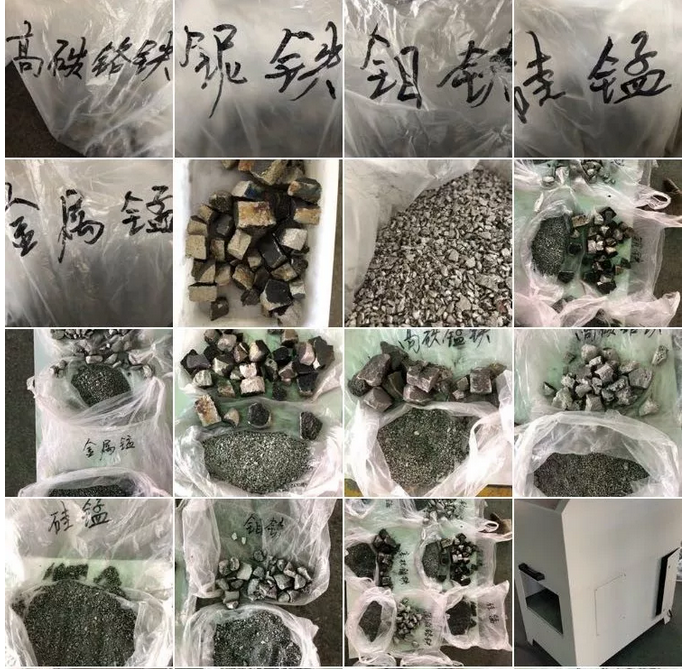 HRBG合金自動制樣系統能夠對高碳錳鐵、低碳錳鐵、硅錳、硅鐵、高碳鉻鐵、鈮鐵、鉬鐵、高硅硅錳、金屬錳、低碳低硅鈦鐵、低鈦高碳合金、等20多種合金自動制樣,集稱重、提升、破碎、縮分、研磨于一體,適用于來樣20Kg-40KG的入料直徑小于70mm,出料180目95%以上工分樣品自動制樣完成,主體部分引進國外的先進技術和產品:從自動破碎、自動縮分機、全自動研磨機,杜絕樣品交叉污染,一鍵式完成。配備易于維護的濾芯式除塵系統;全程一個單樣耗時500秒;如果雙磨盤使用,節約100秒;設備運行平穩、振動小、噪音低、粉碎效率高、操作簡單,此技術填補了國內自主研發、生產合金自動制樣的空白。全程機械手替代人工,可組合完成各種操作,真正實現了智能化,極大程度上提高效率、減少污染;數據更快捷和可追述性。